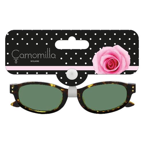 Occhiali da sole per adulti per la protezione dai raggi u.v. realizzati nel pieno rispetto del regolamento (UE) 2016/425 e della norma ISO12312-1:2013/A1:2015. Marcatura CE. Montatura tartaruga lucido trasparente con sfumature dorate