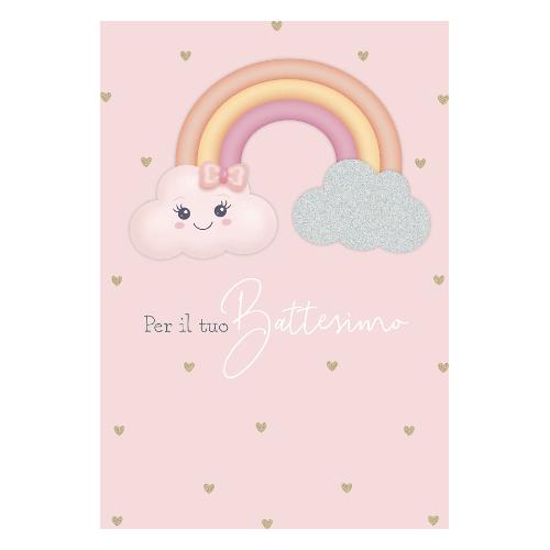 Biglietto auguri Battesimo (11,8x16,8cm) (1pz) SPRING Rosa SRB04
