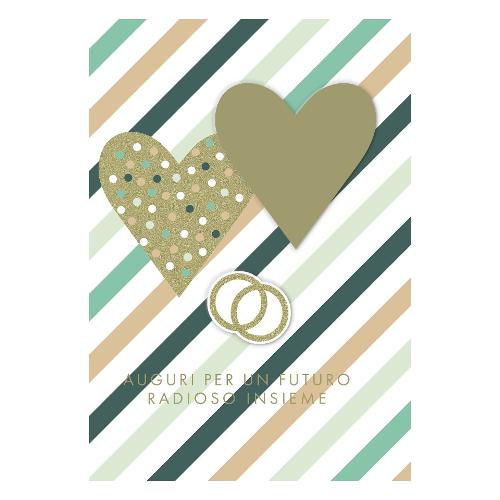 Biglietto auguri matrimonio in cartoncino con foil oro e applicazioni 3d. Busta inclusa