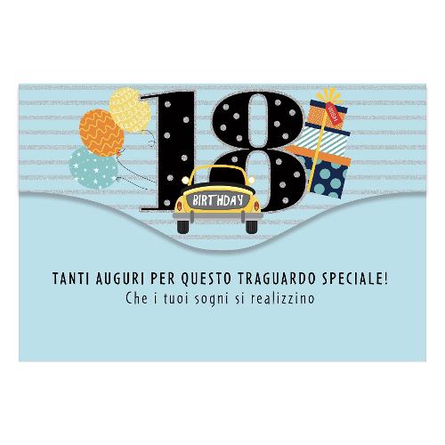 Biglietto auguri Compleanno 18 anni, con tasca portasoldi GVE61