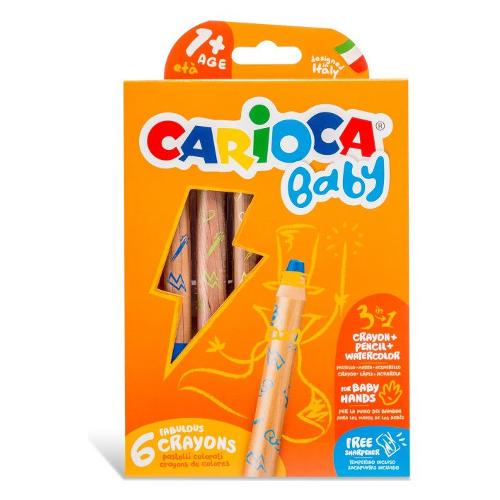 Scatola 6 pastelloni baby 1+ 3in1, matita, cera e acquerello in un unico pastello