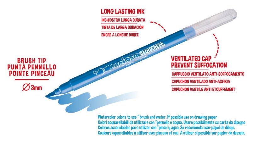 Carioca Pennarelli acquerellabili da disegno sezione tonda 12 pz tratto Medio Colori assortiti 42747