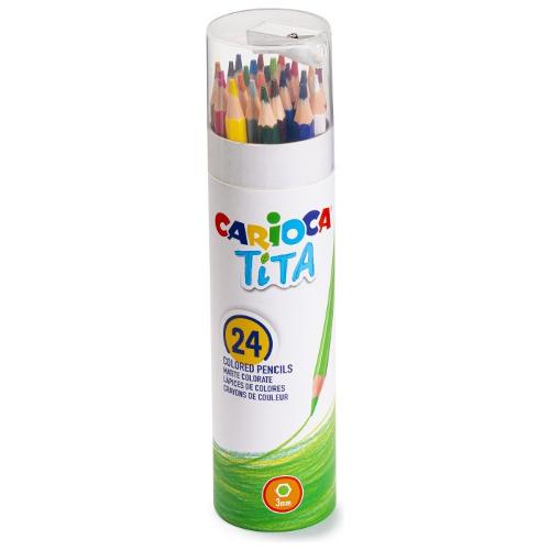 Carioca Set matite colorate classiche sezione esagonale 24 pz con temperino TITA Colori assortiti 43341