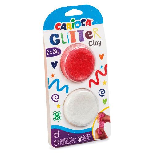 Pasta modellabile Glitter Clay 2 vasetti 20gr Bianco e Rosso 42129