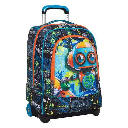 Tessuto poliestere, schienale imbottito e rivestito, spallacci imbottiti a scomparsa totale quando usato come trolley (Crossover System), ruote d.75 mm, maniglia telescopica alluminio