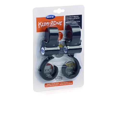 Gancio janè multifunzione, facile e veloce da montare. Adatto per l'utilizzo in macchina, sul passeggino, sulla culla. ogni gancio supporta fino a 10 kg. Confezione: 2pz.
