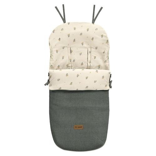 Sacco in cotone, traspirante. Molto versatile, si adatta a ogni stagione grazie all'imbottitura interna rimovibile e alla funzione materassino. Regolabile in altezza in modo da non sfregare contro le ruote del seggiolino. Può essere trasformato in un materassino rimuovendo la parte superiore.