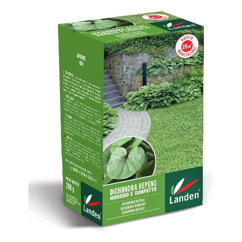 Dichondra repens forma un tappeto erboso morbido e compatto, dalle caratteristiche foglioline rotonde molto piccole. Non teme il caldo e la siccità ed è particolarmente adatto ai climi asciutti. Ii risultato è un prato perfetto da non tagliare mai. Copertura 50 mq (250 mq/kg) per tappeto erboso morbido e compatto da non taglare mai