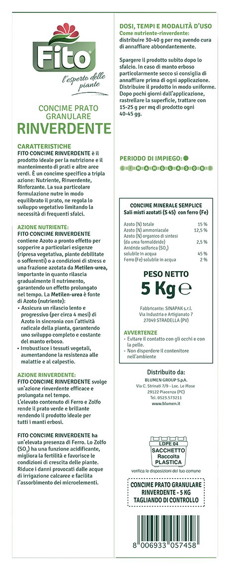 Rinverdente è un concime minerale semplice che offre una tripla azione per il tuo prato formulato concime minerale semplice sali misti azotati (s 45) con ferro (fe).