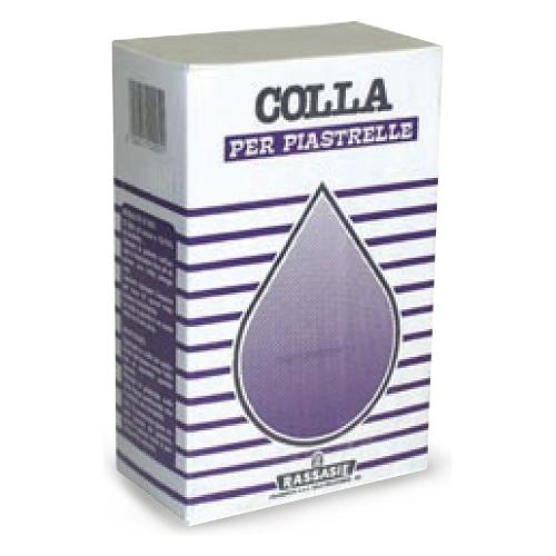 La colla per piastrelle e’ un adesivo in polvere composto da cemento bianco, inerti a granulometria scelta e additivi speciali. Mescolata con acqua, la colla per piastrelle da origine ad una pasta lucida e plastica, dotata di buone proprieta’ adesive nei confronti di tutti i materiali da rivestimento e di tutti i sottofondi usati in edilizia, e Incollaggio di rivestimenti con piastrelle di ogni tipo e formato fino a 30 x 30 cm.