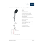 Manopola doccia con tecnologia grohe water saving per il risparmio idrico; sistema antiscottatura tramite canalizzazione interna dell'acqua. Kit include flessibile vitalioflex trend 1750 mm 1/2" e supporto a parete vitalio universal, non regolabile