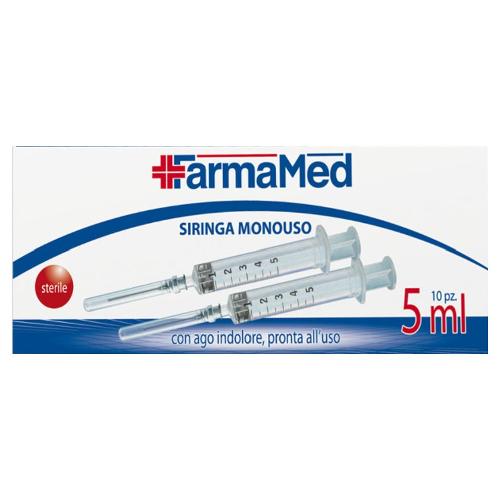 Siringhe sterili monouso confezionate singolarmente, indicate per prelievi e punture. Trasparenti, con scala graduata e ago indolore rimovibile. Confezione 10 pz