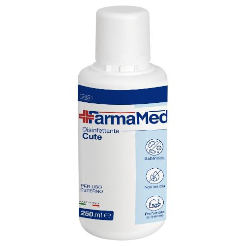 Farmamed Disinfettante Cute esplica una rapida ed efficace azione di disinfezione ad ampio spettro antibatterico. È generalmente indicato per la disinfezione delle mani e dell’epidermide prima di iniezioni intramuscolari ed endovenose e per la pulizia della cute integra.