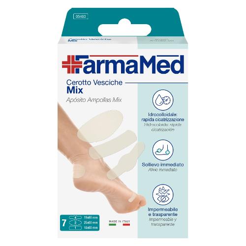 Cerotto idrocolloidale per la protezione delle vesciche doloranti. Favorisce la cicatrizzazione, dona sollievo e protegge la vescica da sporco e batteri, principali cause di infezione. Resistente all’acqua. Cerotti vesciche disponibili in vari formati per adattarsi alle varie zone del piede.