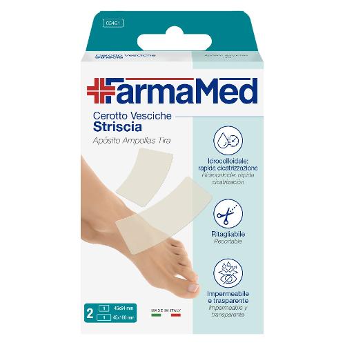 Cerotto idrocolloidale in comoda striscia ritagliabile, per la protezione delle vesciche doloranti. Favorisce la cicatrizzazione, dona sollievo e protegge la vescica da sporco e batteri, principali cause di infezione. Resistente all’acqua. Cerotti vesciche disponibili in vari formati per adattarsi alle varie zone del piede. La confezione include: 1 pz 45x64 mm, 1 pz 45x100 mm