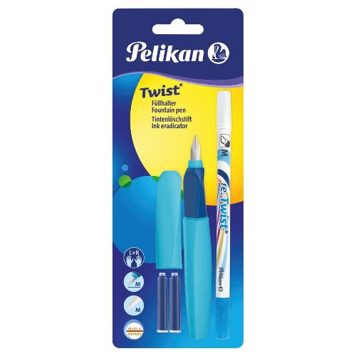 Pelikan Penna stilografica Twist assortita con cancellino Super Pirat e 2 cartucce inchiostro Blu Royal 926071