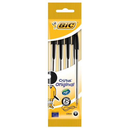 Bic Set penne a sfera cappuccio 4 pz tratto Medio - 1,0 mm Nero Original CRISTAL 8308591