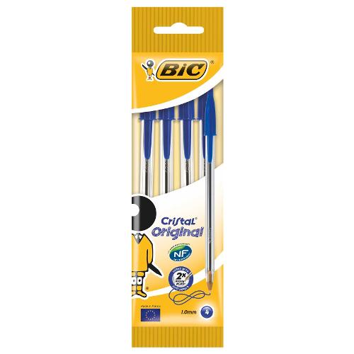 Bic Set penne a sfera cappuccio 4 pz tratto Medio - 1,0 mm Blu Original CRISTAL 8308601