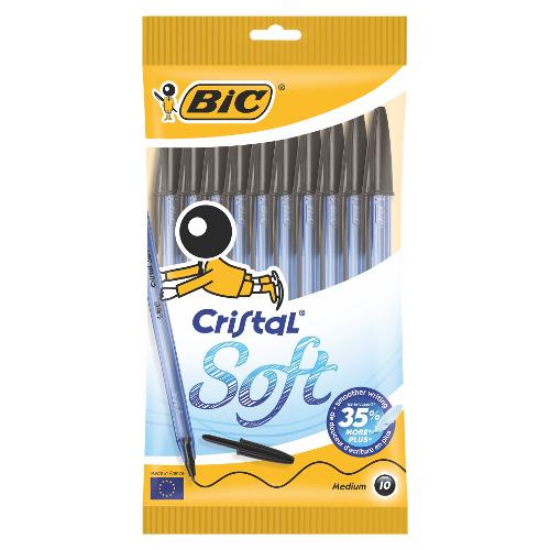 Bic Set penne a sfera cappuccio 10 pz tratto Medio - 1,2 mm Nero Easy glide Soft CRISTAL 918531