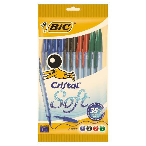Bic Set penne a sfera cappuccio 10 pz tratto Medio - 1,2 mm Nero, blu, verde,rosso Soft CRISTAL 918533
