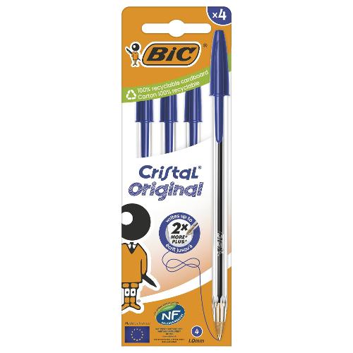 Bic Set penne a sfera cappuccio 4 pz tratto Medio - 1,0 mm Blu Original CRISTAL 516332