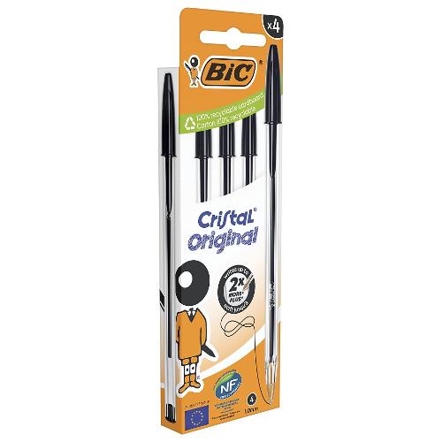 Bic Set penne a sfera cappuccio 4 pz tratto Medio - 1,0 mm Nero Original CRISTAL 516335