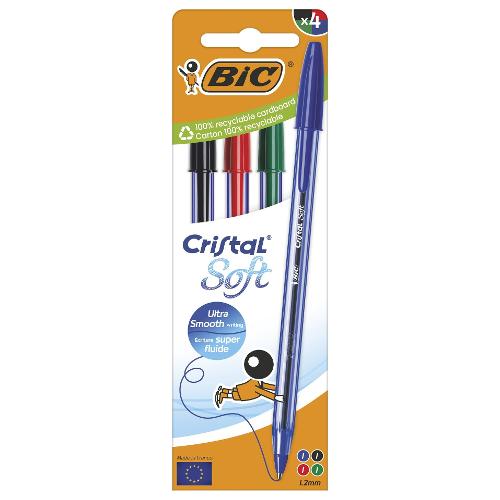 Bic Set penne a sfera cappuccio 4 pz tratto Medio - 1,2 mm Multi colori Soft CRISTAL 516343