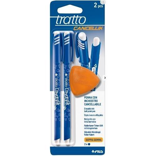 Set penne cancellabili sfera cappuccio 2 pz con gomma tratto Fine - 0,4 mm Blu TRATTO CANCELLIK 041701