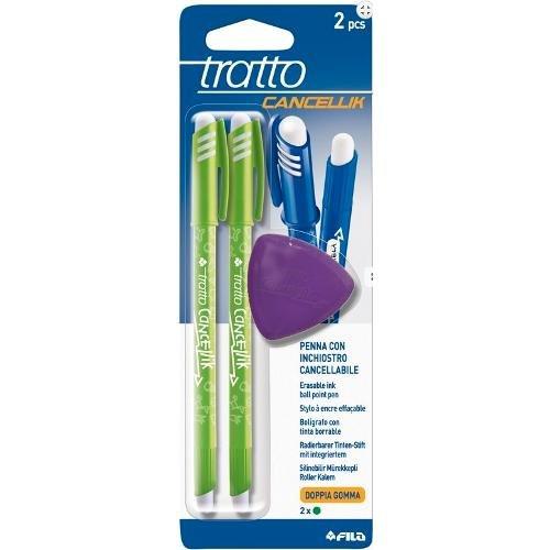 Set penne cancellabili sfera cappuccio 2 pz con gomma tratto Fine - 0,4 mm Verde TRATTO CANCELLIK 041704