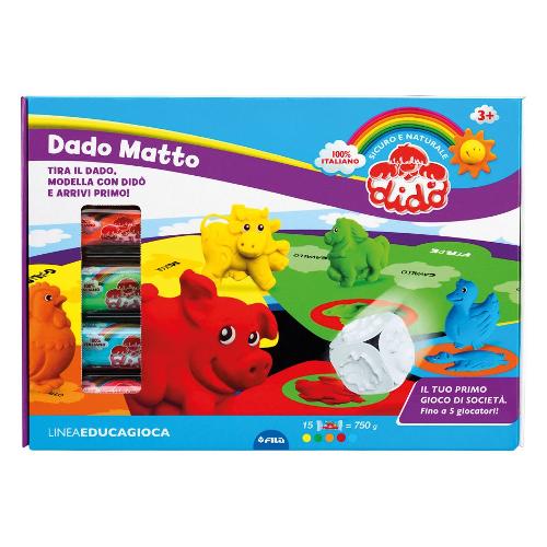 Didò presenta il suo primo gioco da tavolo di società: fino a 5 giocatori, 3 salsicciotti a testa, 1 dado stampante a 6 facce con 5 animali + 1 jolly-didò. Il tabellone da gioco è suddiviso 5 aree e a ogni area corrisponde 1 animale, la cui sagoma è ripetuta 3 volte. A turno, si lancia il dado e se esce l’animale con cui si sta giocando, si stampina e si posiziona su una delle sagome. Vince chi le riempie per primo. Pronti a lanciare il dado?