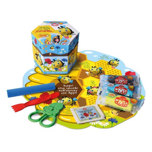 Didò ama la natura e dedica alle api il gioco che insegna ai bambini perchè sono importanti, cosa fanno e come preservarle. La scatolina esagonale ricorda le cellette delle api, la forma salva-spazio per eccellenza e contiene 150g di pasta per giocare e gli attrezzini per modellare le amiche apine. Sotto il coperchio scopriamo di più sulle api e troviamo anche una bustina di semini di fiori autoctoni italiani da piantare per diffondere la cultura della bio-diversità anche tra i più piccoli. La base della scatolina si apre a petalo e diventa una tovaglietta interattiva. 18 scatoline sono posizionate in modo giocoso e attrattivo nell'originale espositore alveare. La confezione include: 3 salsicciotti didò 50 gr, coltellino, mattarello, forbicine, tovaglietta gioco, bustina di semi di fiori