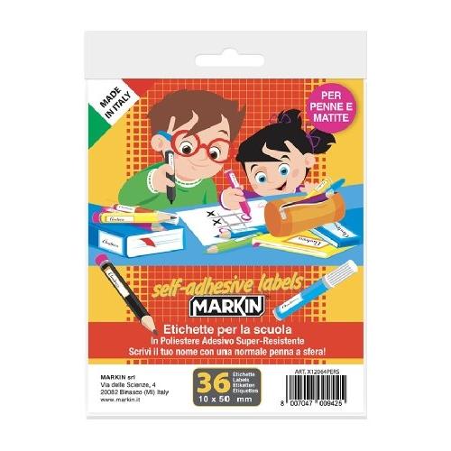 Set etichette adesive per penne e matite (50mm x 10mm) 2 ff da 18 pz MARKIN Colori assortiti X12064PERS