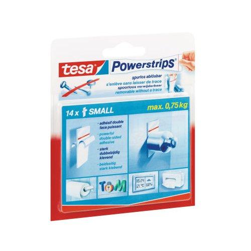 tesa Powerstrips Small sono strisce biadesive removibili ideali per il fissaggio di piccoli oggetti decorativi che dispongono di una superficie piatta e che non pesano più di 1kg. Offrono anche la libertà di rimuovere gli oggetti in ogni momento senza preoccuparsi dei danni alle piastrelle o dei buchi nelle pareti. inoltre sono compatibili con l'intera gamma di ganci tesa Powerstrips