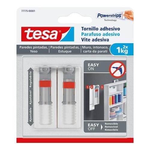 Tesa Set ganci adesivi 2 pz plastica vite regolabile  (portata max 1 Kg ) POWERSTRIPS Grigio 77775