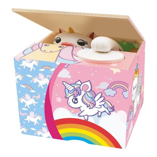 Lascia cadere delle monete per far muovere la testa del cucciolo mentre le "mangia".