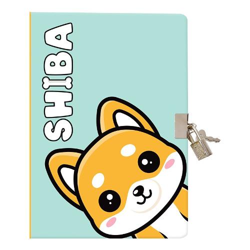 Copertina in cartoncino rigido con decoro stampato quadricormia e lucchetto in metallo cromato con doppia chiave