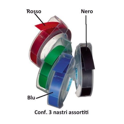 Set nastri etichettatrice 3 pz (9mm x 3m) 3 mt Nero su colore assortito OMEGA S0847750