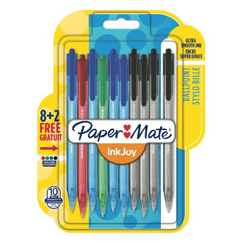 Paper Mate Set penne a sfera scatto 10 pz tratto Medio - 1,0 mm Multi colori gel INKJOY 100RT 1956357