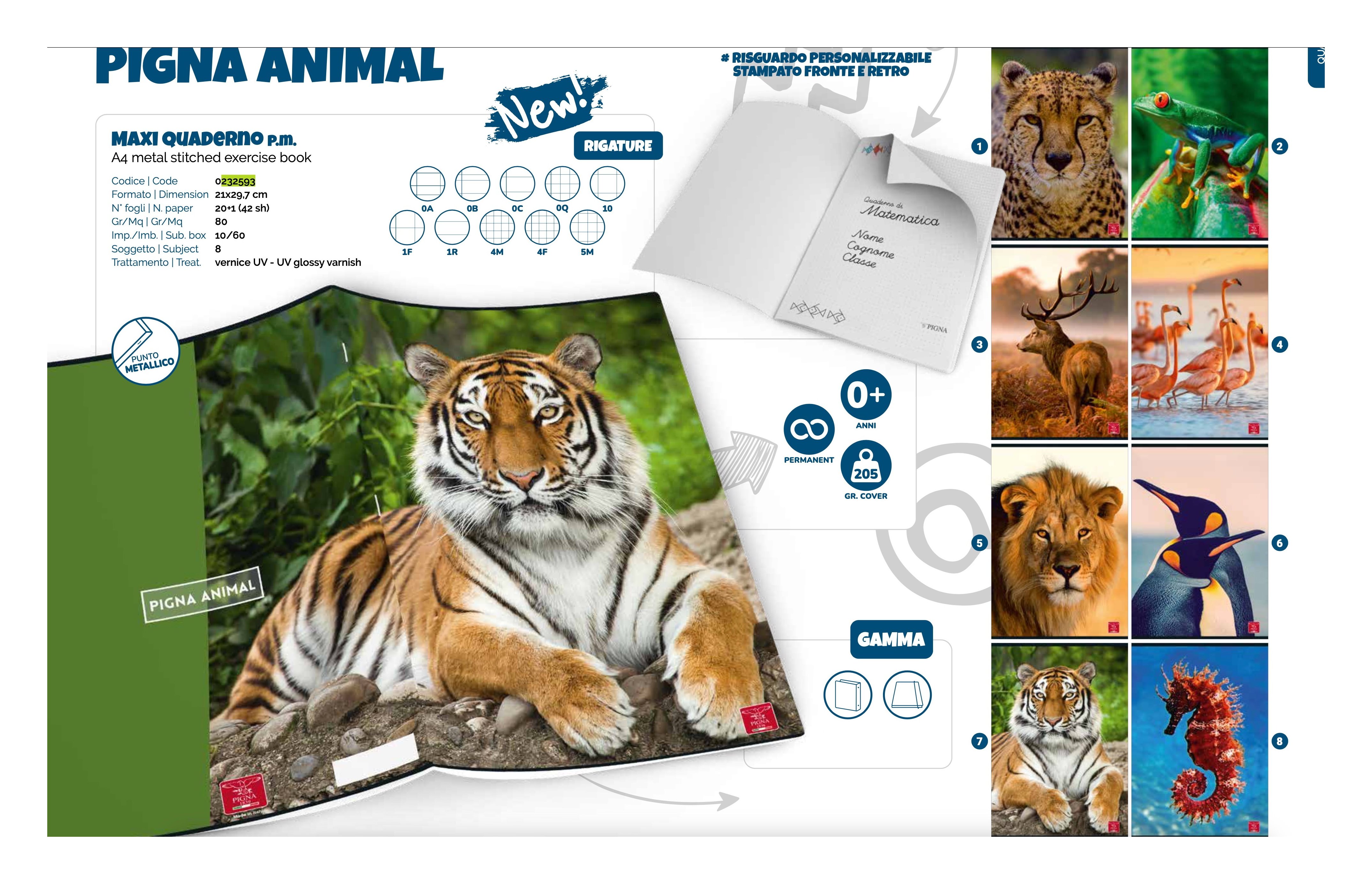 Pigna Quaderno quadretti 5 mm con margine (Q) A4 80 gr/mq ANIMAL Assortito 02325930Q