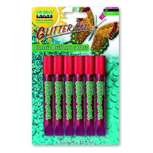 Lebez Colla glitter 6 tubetti 10,5 ml Rosso 5131 R