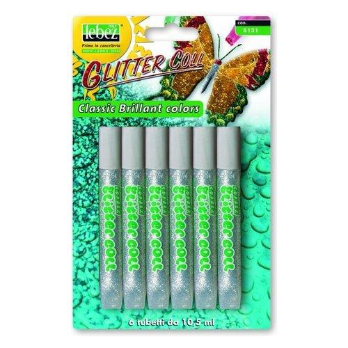 Lebez Colla glitter 6 tubetti 10,5 ml Argento 5131 AG