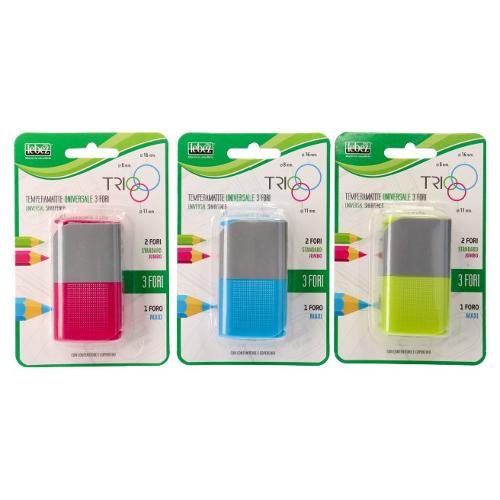 Lebez Temperamatite triplo foro con serbatoio Trio Assortito 81110B