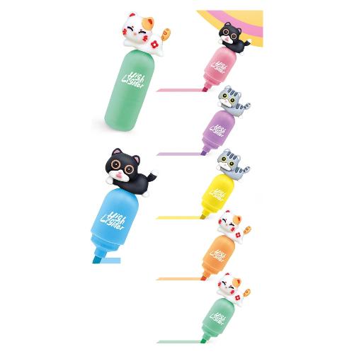 Evidenziatore con decoro gattino punta scalpello Assortito Pastel MEOW CAT 82070