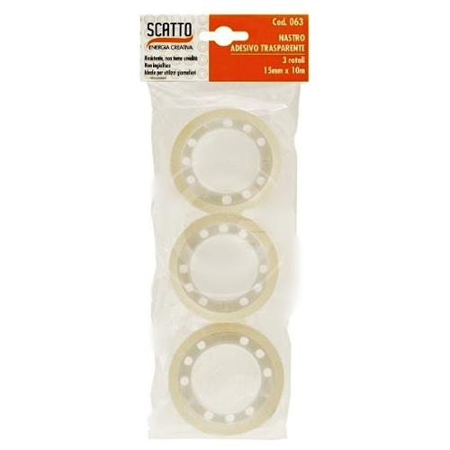 Scatto Set nastri adesivi 3 pz (15mm x 10m) Trasparente 064