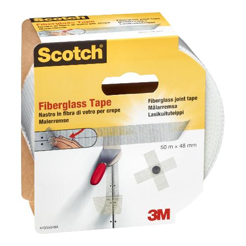 Scotch® fiberglass tape è un nastro autoadesivo scotch® in fibra di vetro. Perfetto per sigillare rapidamente e in modo sicuro lastre di cartongesso e per tappare eventuali crepe o buchi su pareti o soffitti. Il tessuto a rete di vetro particolarmente sottile è resistente con adesione istantanea e garantisce applicazioni senza bolle. Per uso interno. Attaccare il nastro nel punto desiderato e premere lo stucco attraverso il tessuto del nastro per giunzioni. Applicare lo stato coprente dopo l'asciugatura. Per i lavori di stuccatura su pannelli di cartongesso, questi ultimi devono essere montati saldamente e il substrato deve essere in grado di sostenerli quando utilizzati su pareti o soffitti.