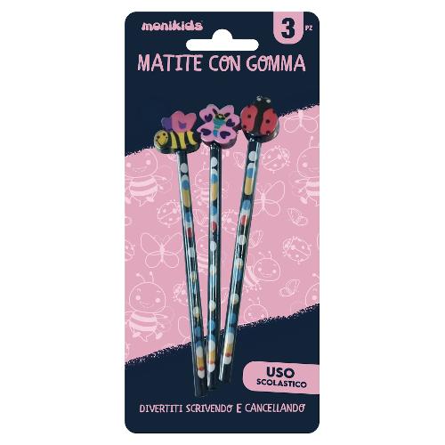 Set matite grafite gradazione HB sezione tonda 3 pz Fly MONIKIDS 32NIK19
