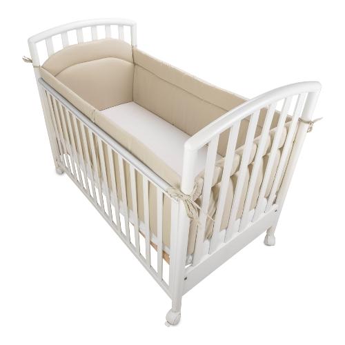 Il paracolpi lettino 4 lati è un supporto definito a sicurezza totale dagli urti per il bambino che dorme in un lettino con sponde. E' realizzato in tessuto 100% cotone certificato Oeko-Tex. L'imbottitura è in morbida fibra di poliestere traspirante da 400 grammi con spessore di 4 cm.Il paracolpo giroletto culla è adattabile alla maggior parte dei lettini in commercio, ripiegabile in 4 lati, misura 125x65x125x65, l'altezza della testata è di 50cm mentre i restanti 3 lati sono alti 40cm. Facile da fissare alle spondine grazie a ben 6 coppie di laccetti ed ad un supporto finale in velcro che ne aumenta la stabilità. Facilissimo da lavare! Va arrotolato su sé stesso, fissato con un laccio di stoffa e messo direttamente in lavatrice preferendo i programmi delicati a bassa centrifuga. Non utilizzare asciugatrice. Rigorosamente MADE IN ITALY