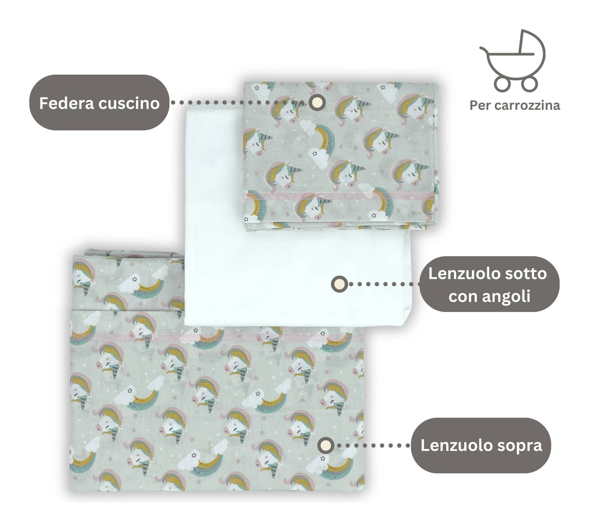 Set lenzuola culla 3 pz Unicorno rosa LCUR