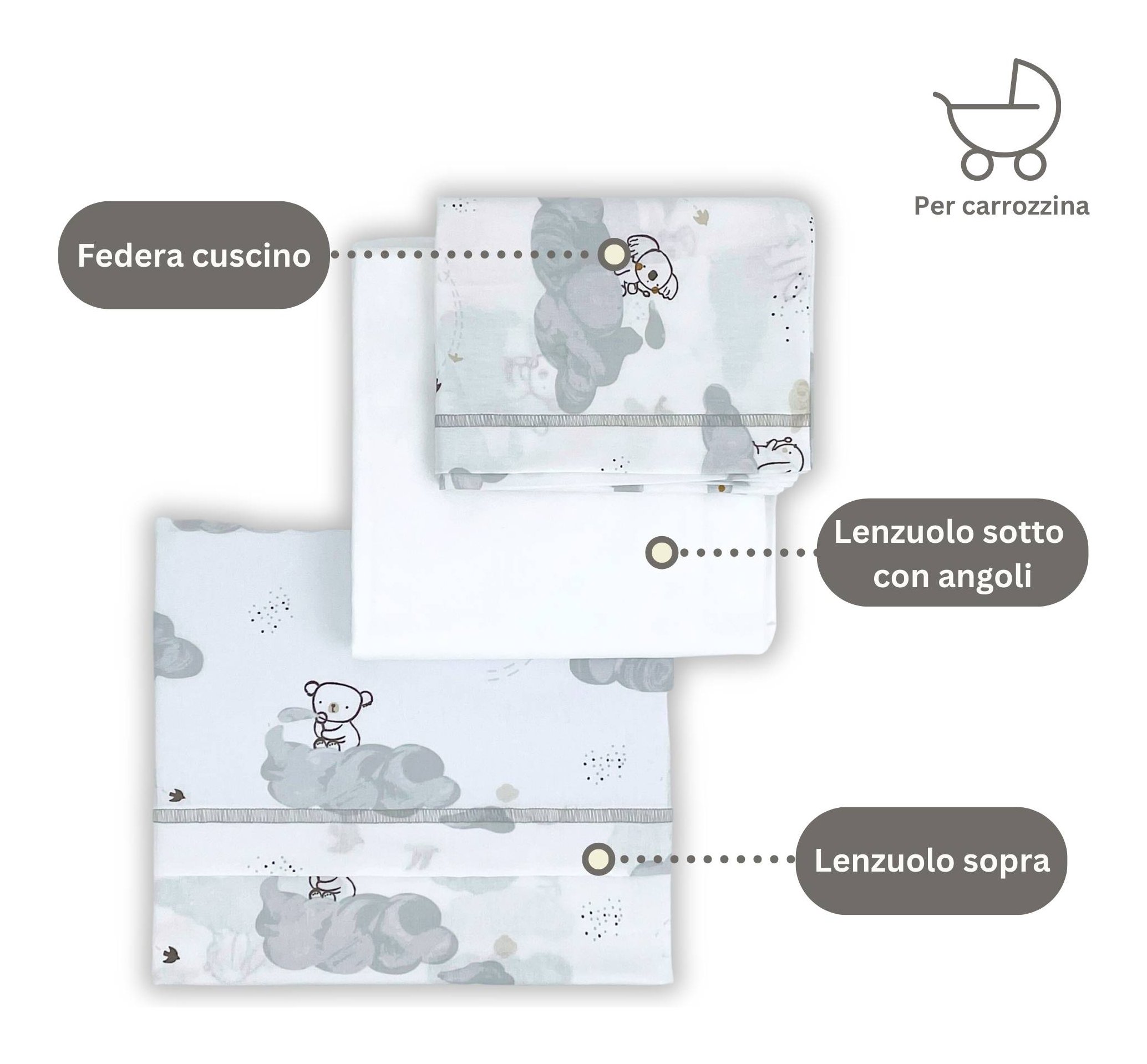 Set lenzuola culla 3 pz Koala grigio LCKG