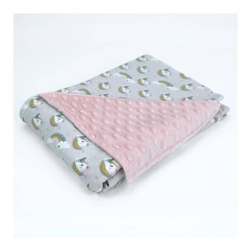 Baby Idea Coperta carrozzina Jersey 100% Cotone e Pile Minky 100% Poliestere (90x65cm) Unicorno rosa PCUR